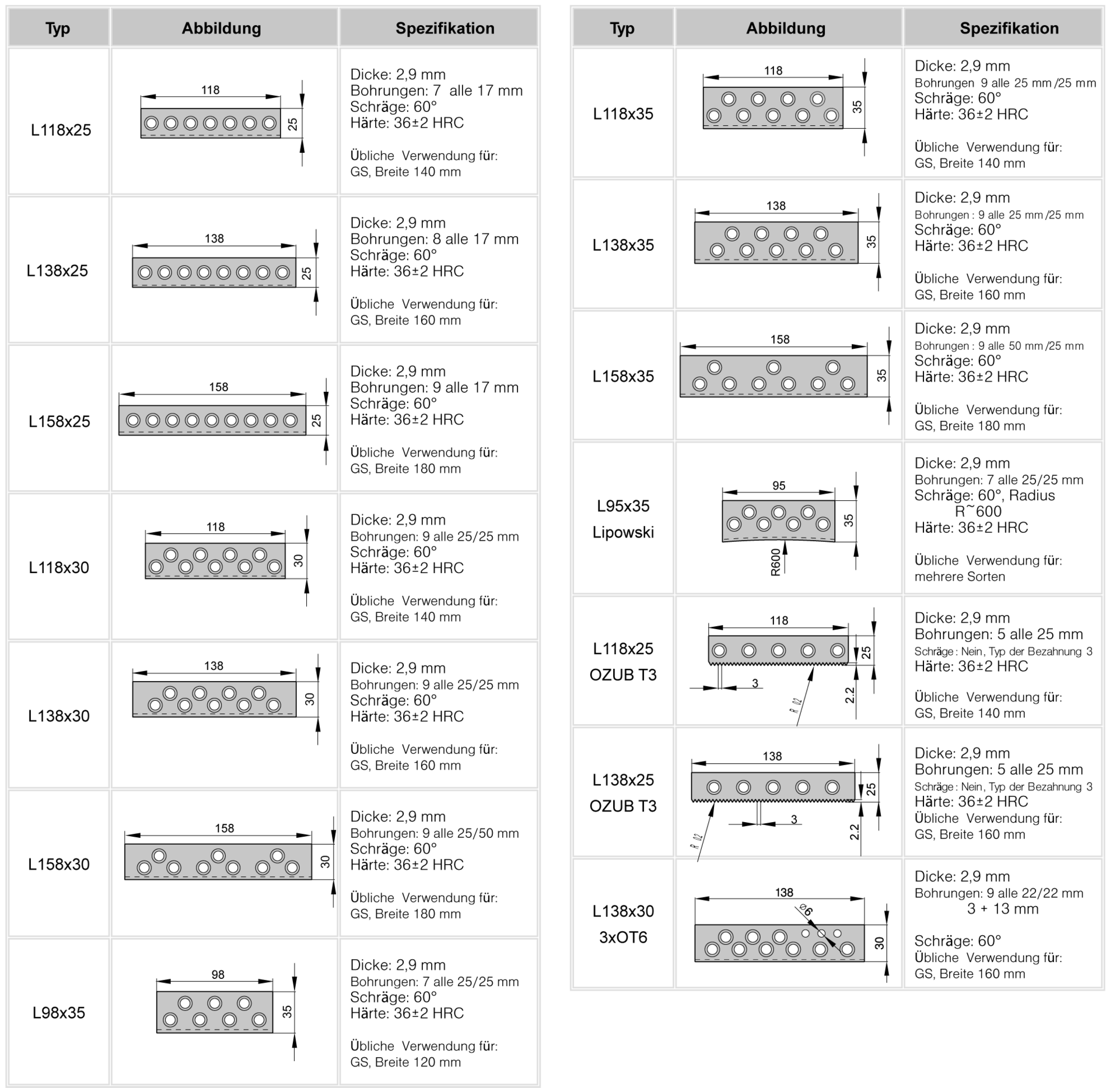 » Bogenangeln (Radius R~600 mm, andere Angelabmessung als in der Tabelle angeführt)